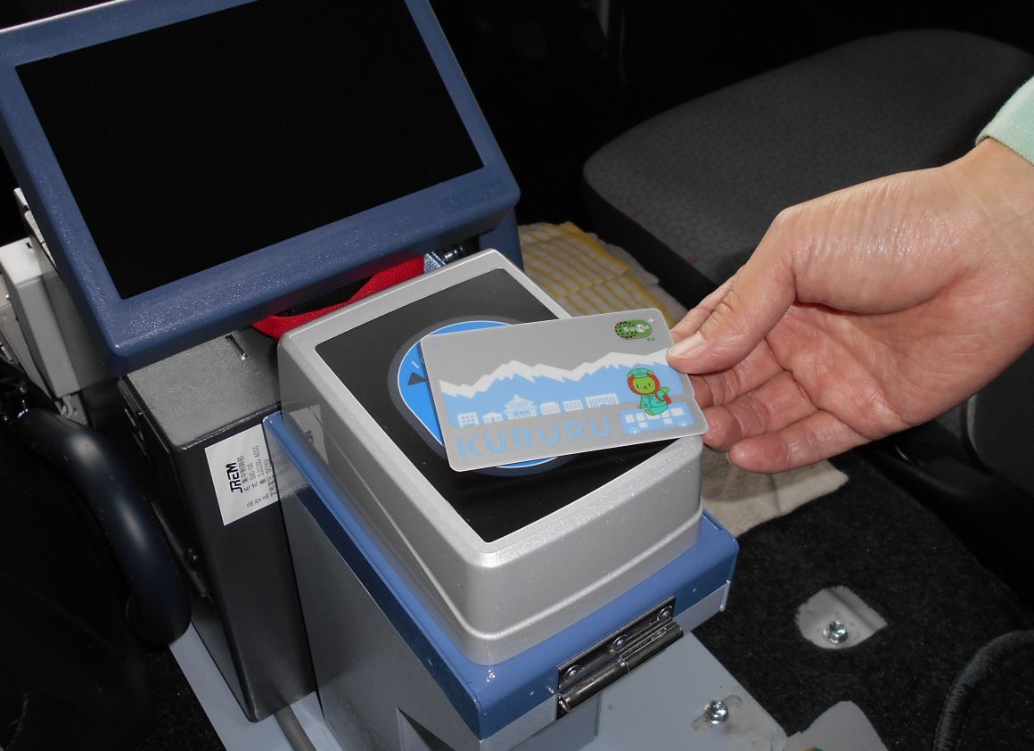 KURURUを運賃箱上にある読み取り機にタッチしてください。(運賃を自動で差し引きます)
